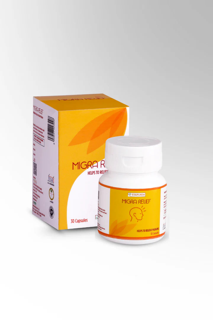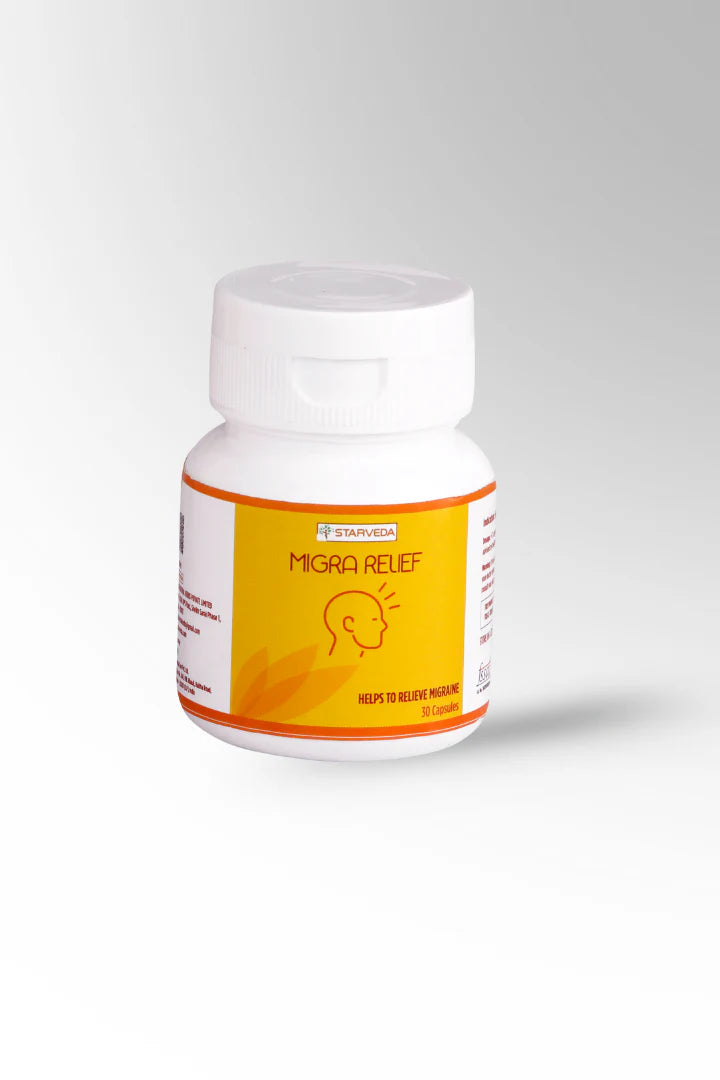 Migra Relief is an Ayurvedic formulation designed to help manage and relieve migraine-related symptoms naturally. Enriched with time-tested herbs known for their calming and cognitive support properties, Migra Relief offers a holistic approach to migraine care.